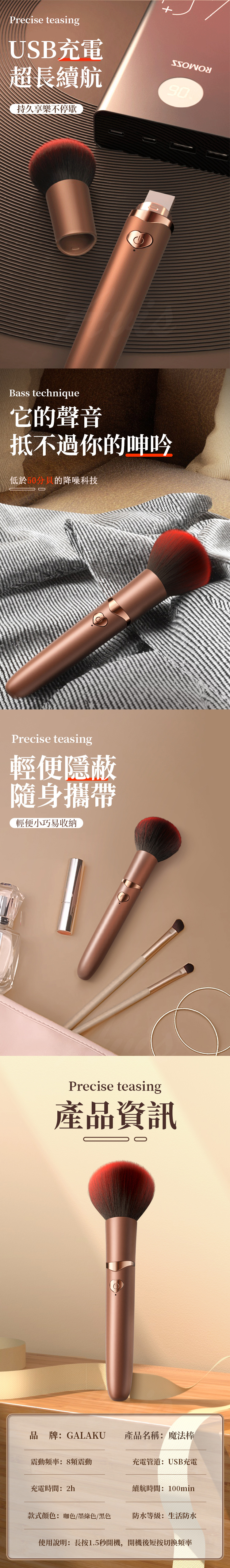 產品名稱:GALAKU|魔法棒 10頻模式|蜜粉刷設計按摩棒 USB充電