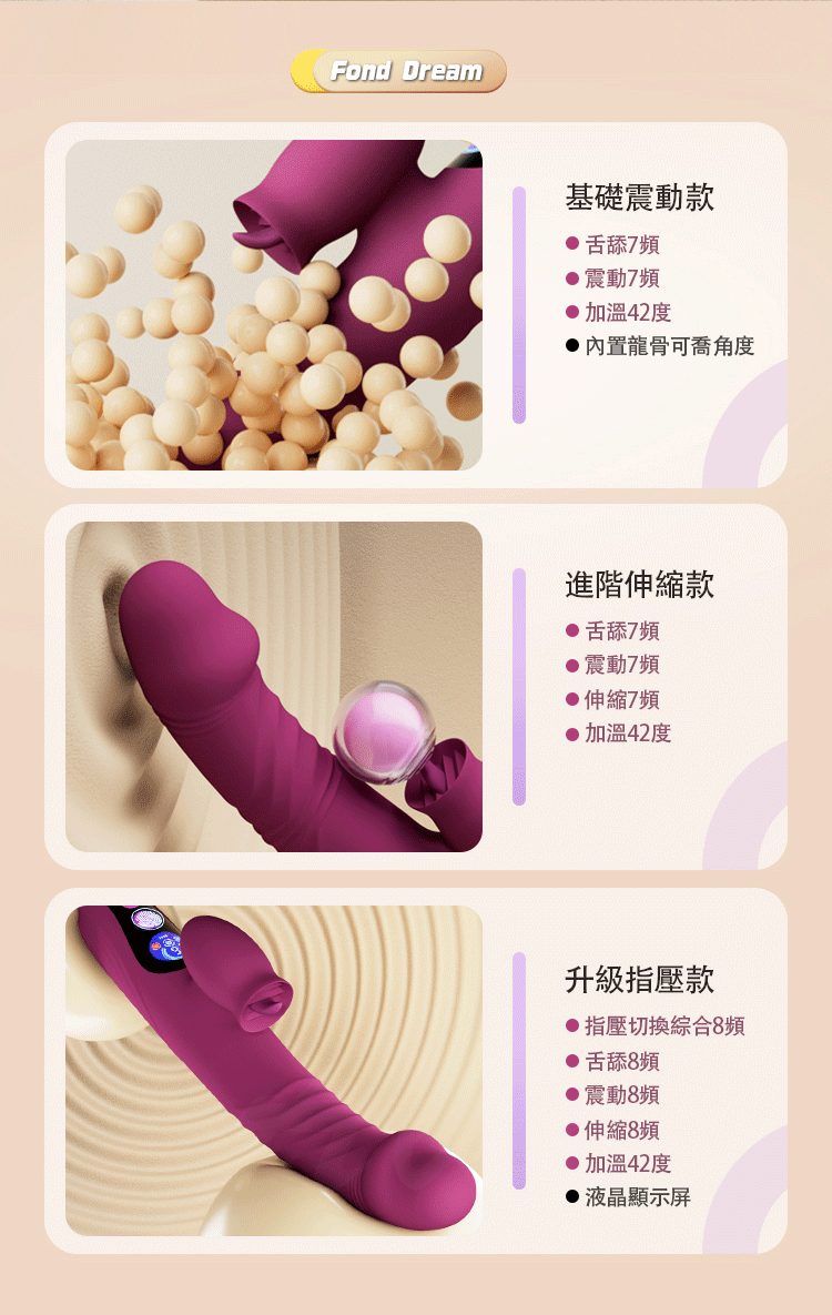 綜合享受:8頻舌舔、8頻震動、8頻伸縮,多重快感疊加