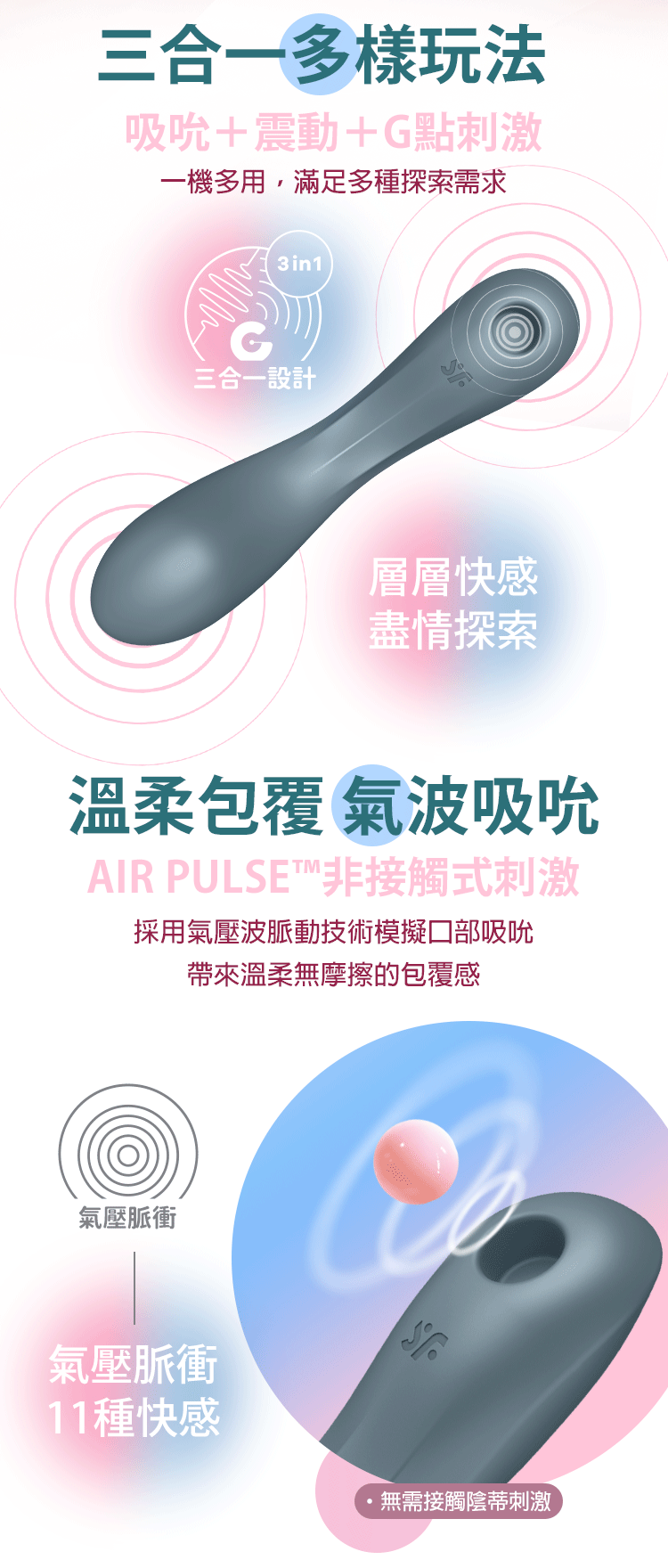 三合一玩法|吸吮、震動、按摩自由切換,探索更多可能
