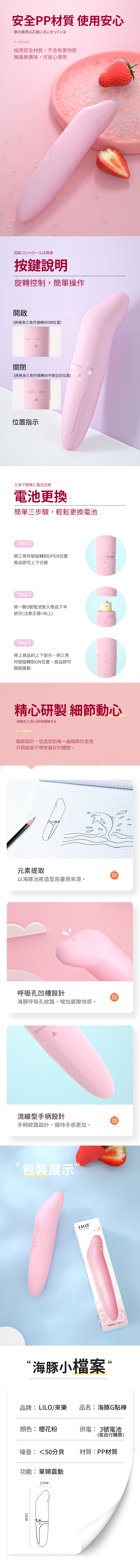 .主商品:LILO|小海豚G點翻騰防水震震棒 粉
