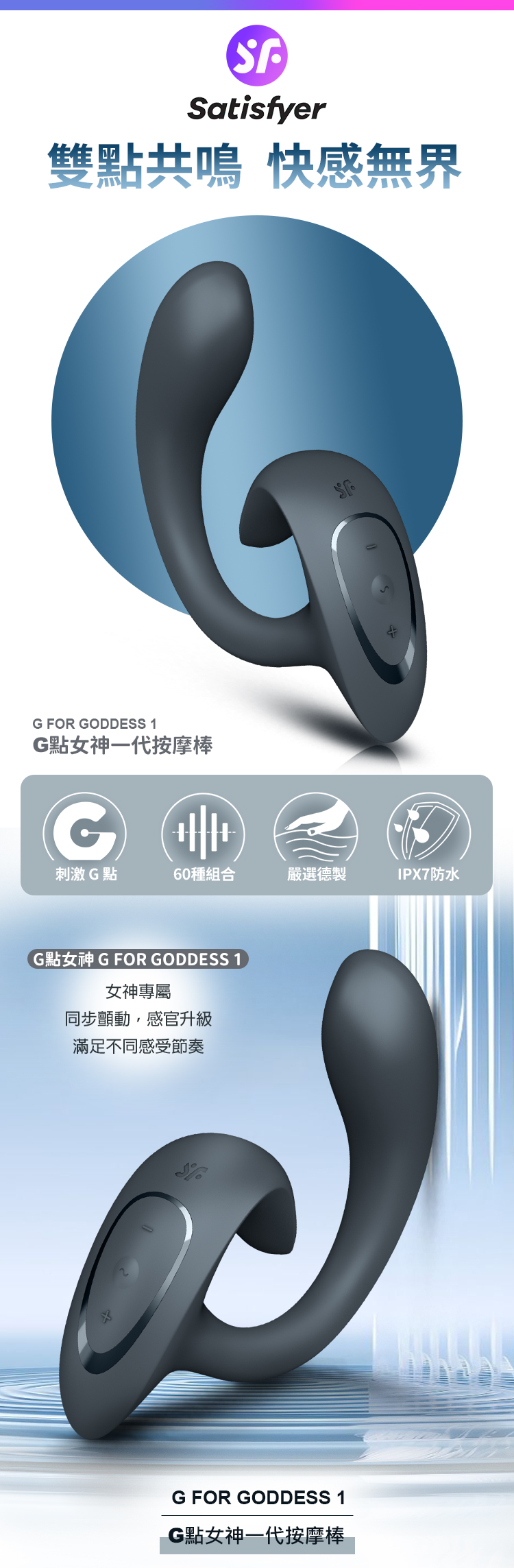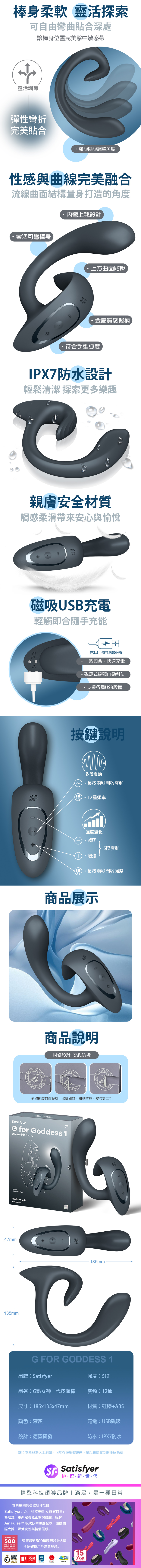 品名:Satisfyer|G for Goddess 1|G點女神一代 GC點按摩棒 深灰